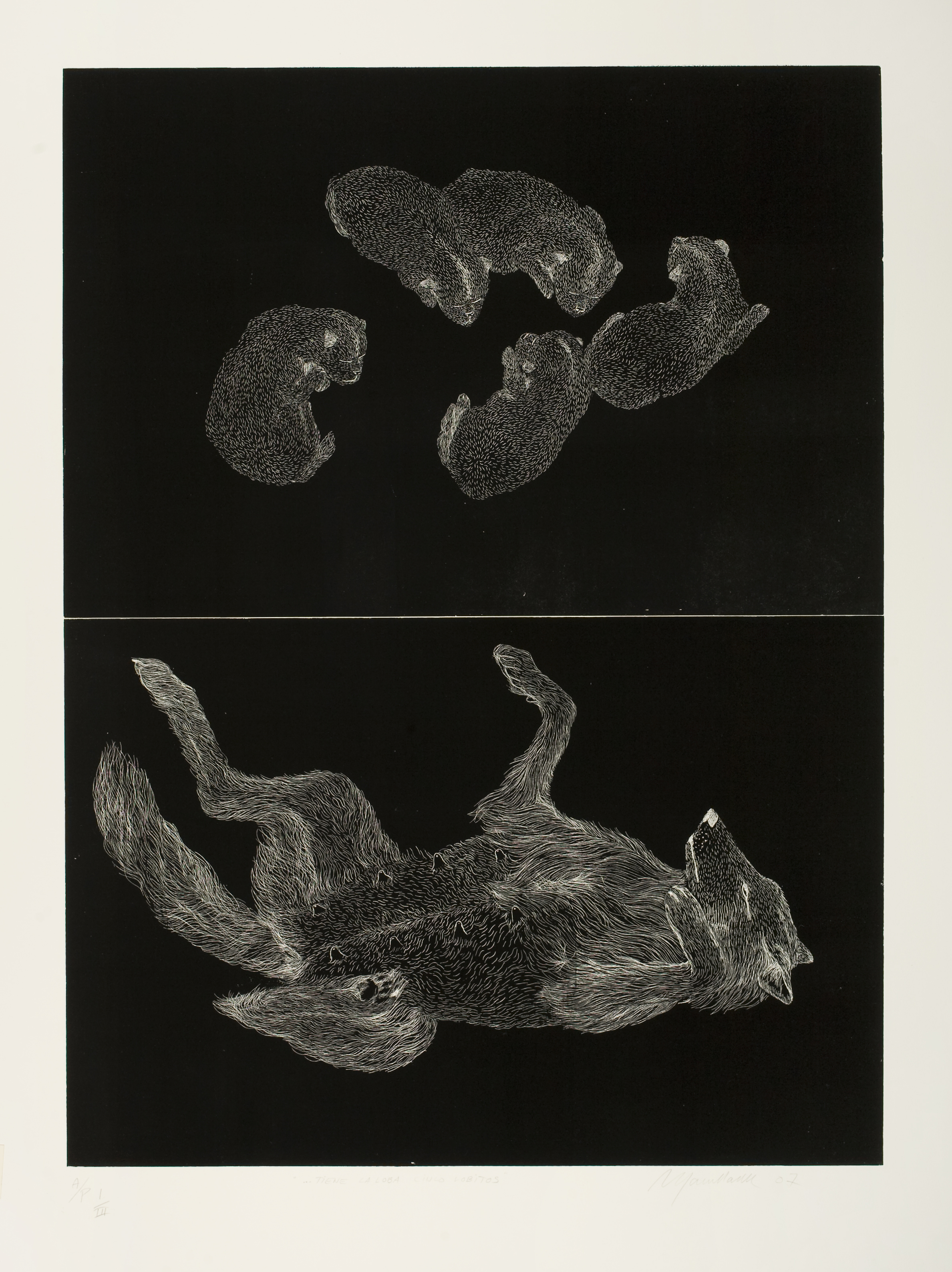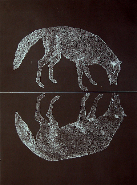 The wolfish world Etching and mixed media. Years 2006-2007. Some prints are available by Flatbed Press.